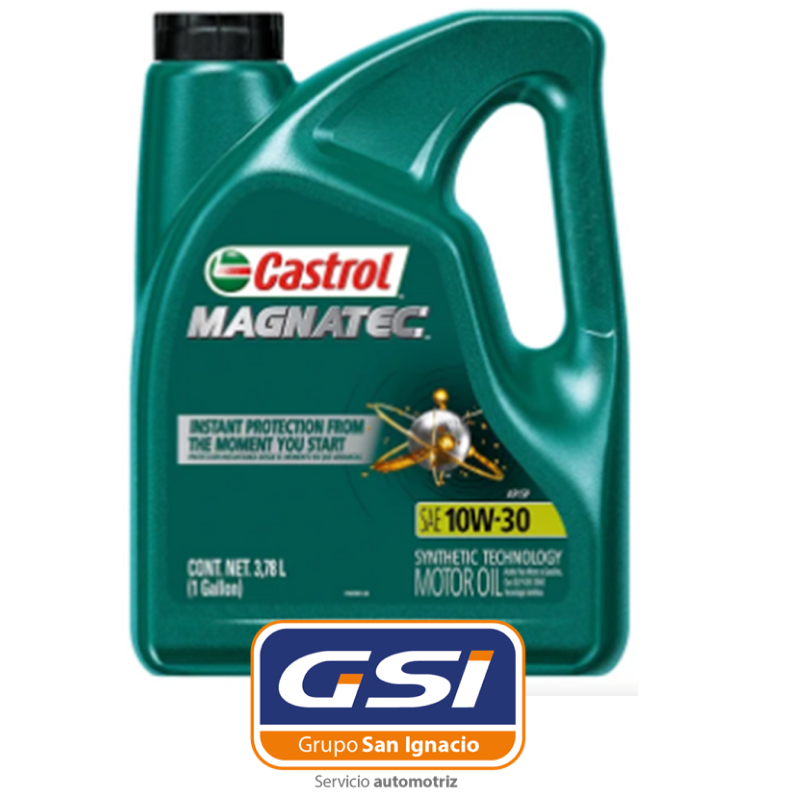 Aceite semi-sintético Castrol Magnatec 10W-30 de 3.75 litros, diseñado para ofrecer protección instantánea al motor desde el arranque, con moléculas “inteligentes” que se adhieren a las piezas para reducir el desgaste.