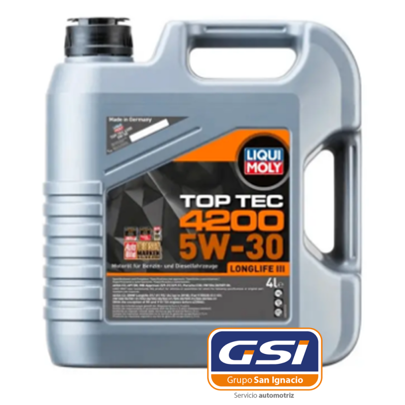 Liqui Moly Top Tec 4200 5W-30 es un aceite de alta tecnología de baja fricción, formulado para motores gasolina y diésel (incluyendo aquellos con filtro de partículas) y para intervalos de cambio prolongados.